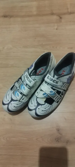 Zapatillas para ciclismo o spinning con calas en el pedal. Cierre con cordones. Marca española Luck No se incluyen las calas. Son un 38 pero tallan pequeño.