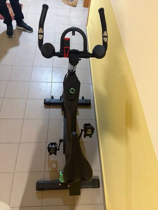Bicicleta estática para entrenamientos de spinning en casa. Diseñada para ofrecer una experiencia de ciclismo indoor. - Estructura metálica robusta. - Sillín ajustable. - Manillar ergonómico. Funciona perfectamente, lleva las calas instaladas para mejor pedaleo. No funciona el cuenta km ni pulsaciones