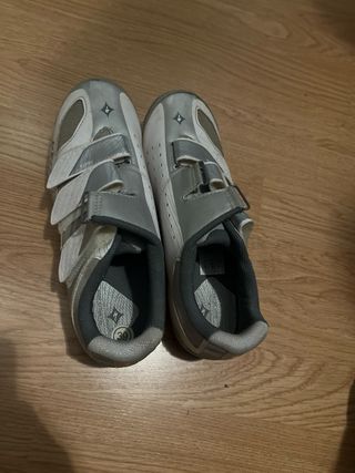 zapatillas de la talla número 39, de la marca SPECIALIZED tipo calas ya que se enganchan a los pedales.