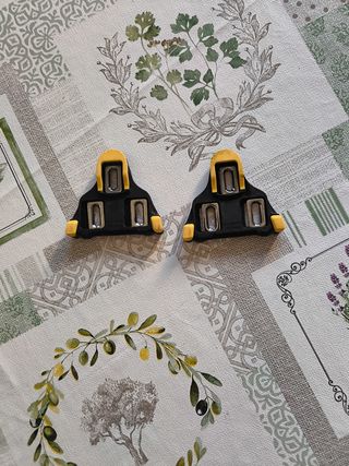 Calas Shimano SM-SH11 para SPD-SL. Son las calas amarillas que permiten flotación.(002) - Incluye dos calas. - Modelo SM-SH11. - Compatibles con pedales SPD-SL.