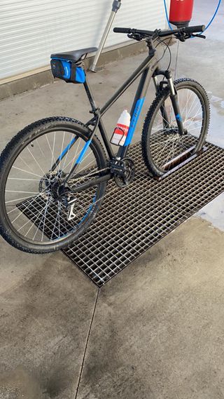 Bicicleta de montaña Cube en excelente estado, con ruedas de 29 pulgadas. La vendo porque la compré por capricho y llevo dos años sin usarla. Regalo los zapatos para calas con 5 salidas de talla 44, el bolso bajo el asiento que aparece en las imágenes con herramientas básicas para emergencias y casco con gafas de sol. Se incluyen tanto los pedales normales como las calas. La bici se ha limpiado y encerado tras cada uso. - Cuadro de aluminio. - Frenos de disco. - Suspensión delantera. - Color negro con detalles azules. -neumaticos antipinchazos (no tubelizada)