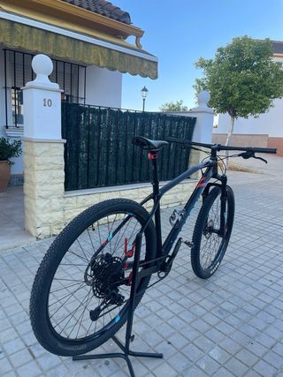 BH ultimate 8.0 con sólo 6 salidas. Estoy cogiendo otra que tengo. Tiene un año aprox. Cambio porque compré una doble suspensión y esta no la utilizo. Talla M Calas shimano y 2 porta bidones incluidos. Cuadro: Ultimate Carbon, EC Layup, Acros ICR, PF92BB, 148x12,UDH Horquilla: Fox 34SC Performance Push to Lock kabolt 100mm Manetas de cambio: Shimano Deore 6100 12sp Cambio trasero: Shimano XT 8100 12sp Pedalier: Shimano MT510 , 175mm Cadena: Shimano Deore Frenos: Shimano M6000 180mm Llantas: Shimano MT400/410 Cubiertas: BH Evo Alloy Tubeless, 25mm, 28H Neumáticos: Maxxis Ardent EXO 2,25 Front/ Maxxis Ikon EXO 2,25 rear Sillín: Prol