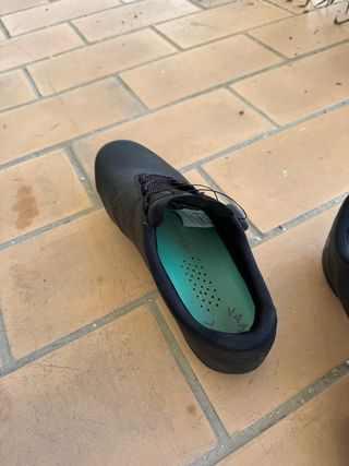 Calas de ciclismo marca Vantage en color negro con detalles en verde. Talla 43. - Cierre con velcro. - Diseño deportivo. - Suela de goma. El primer día que me las puse me caí y he vuelto a los zapatos normales 😂 Perfecto estado, en su caja