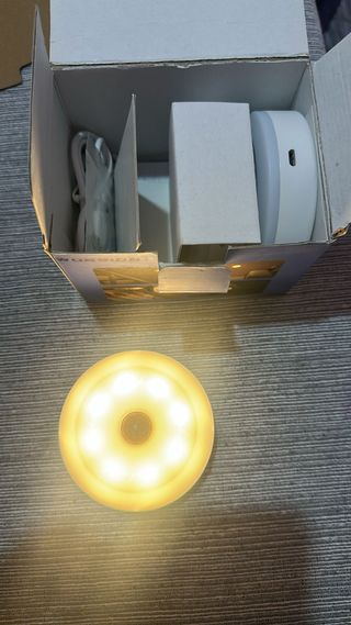 Pack de tres luces LED recargables, ideales para iluminar cualquier rincón. - Diseño circular y moderno. - Luz cálida y agradable. - Fácil instalación.
