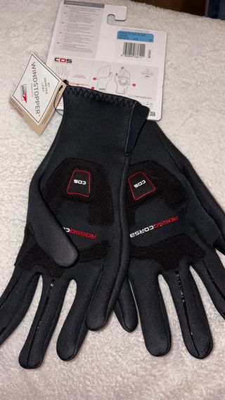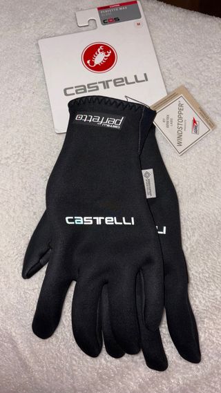 Guantes Castelli Perfetto Max con tecnología Windstopper. La diferencia es que el Perfetto Max lleva un forro en tejido polar más grueso y cálido, y un puño más largo. Además de la calidez adicional, ambos guantes cuentan con la misma protección contra el viento y el agua, la cómoda construcción termoformada de una sola costura, paneles para mayor agarre y durabilidad en la palma, y tecnología touchscreen en la punta de los dedos. - Color negro. - Logo de Castelli en la palma. - Tecnología Gore-Tex Labs. Esta nuevo Talla M