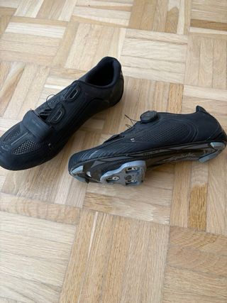 Zapatillas de ciclismo carretera con suela fibra carbon. Cuentan con un sistema de cierre de dial y velcro para un ajuste seguro. Tienen menos de 200km Calas incluidas - Talla 40 - Cierre de dial BOA. - Cierre de velcro. - Diseño deportivo. - Suela Carbon