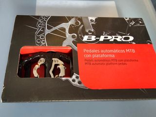 ✨Artículo Nuevo, con factura y garantía✨ 📍Entrega en zona centro de Valencia 🚚Envíos disponibles ◆ Pedales automáticos MTB B-PRO con plataforma, válidos para bicicletas de montaña y trekking. ◆ Sistema tipo SPD compatible con calas estándar, cuerpo de aluminio con jaula/plataforma para uso también con calzado normal. ◆ Eje de acero, mecanismo de muelle regulable, incluyen par de pedales (izquierdo/derecho). ◆ Factura y garantía de El Corte Inglés