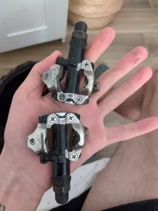 Vendo pedales automáticos Shimano PD-M520. Clásicos de MTB, muy fiables y duraderos. Estado: · Usados, con señales normales de uso (rozaduras, marcas). · Mecánicamente perfectos: sin holguras, giran bien, el mecanismo de enganche funciona ideal. · Limpios y revisados. Detalles: · Modelo: Shimano PD-M520 (doble cara). · Compatibles con calas Shimano SPD. · Eje sellado, poco mantenimiento. Precio: 25€ Zona: Valencia. Entrega en mano.