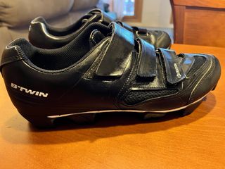 Zapatillas de ciclismo Btwin en talla 46. Perfectas para MTB. - Cierre de velcro. - Color negro. - tacos de aluminio nievos - calas de acero pavonado nuevas