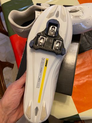 Usadas pero en buen estado son talla 40. Incluyo calas look keo. Características: - Gran diseño exterior dinámico y visible. - Un patrón de cubierta de puesta fácil optimizado para transiciones muy rápidas. - Gran superficie ventilada en cubierta compuesta por ventanas de tejido de rejilla HIGH-FLOW 3. - Banda principal ajustable mediante corte fácil del sobrante del terminal de goma. - Un amplio tirador trasero para ayudar en la puesta. - Dos posibilidades de fijación al cuadro: Trabilla lateral y agujero en tirador trasero. - Incorpora un refuerzo delantero de protección de puntera.