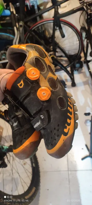Zapatillas de ciclismo de montaña de la marca Catlike. - Cierre con dos ruedas. - Color negro y naranja. - Suela con tacos.talla42 calas incluidas en el precio no envío