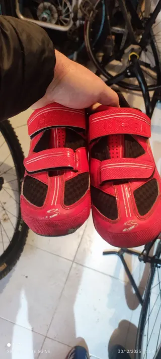 Zapatillas de ciclismo Spiuk para carretera. - Color rojo y negro. - Cierre con velcro. - Suela con diseño deportivo. Talla 43 calas incluidas no envío