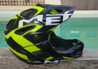 Casco integral MET con un diseño llamativo en amarillo neón y negro. Talla M - 54/58 Perfecto para descensos y enduro. Usado solo 3-4 veces, prácticamente nuevo