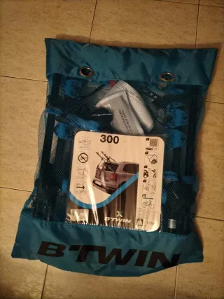 Portabicicletas Btwin 300 para maletero de coche. Viene en su bolsa de transporte. - Modelo: Btwin 300 - Capacidad: 3 bicicletas - Carga máxima: 45 kg - Color: Azul