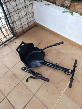 Accesorio para hoverboard con asiento. - Asiento negro. - Manillar ajustable. - Ruedas delanteras. La rueda delantera tiene luz cuando está en marcha . En perfecto estado casi sin uso