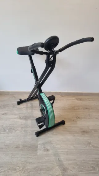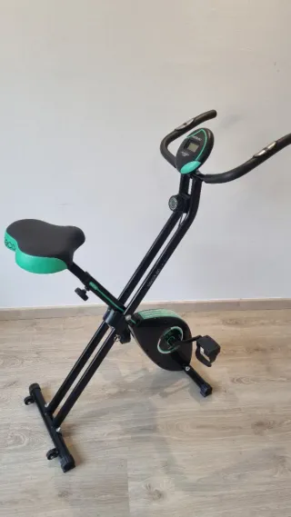Bicicleta estática plegable, ideal para entrenar en casa y ahorrar espacio. - Diseño compacto y fácil de guardar. - Asiento acolchado para mayor comodidad. - Pantalla digital para seguimiento del ejercicio.