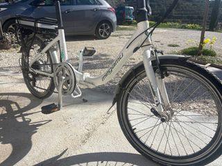 La vendo porque me mudo y me tengo que deshacer de ella, la he usado 3 veces. No tiene cargador. Bicicleta eléctrica Fischer en color negro, con una velocidad máxima de 45 km/h. - Cuadro de aluminio. - Batería integrada. - Ruedas de 28 pulgadas. - Portaequipajes trasero. - Suspensión delantera.