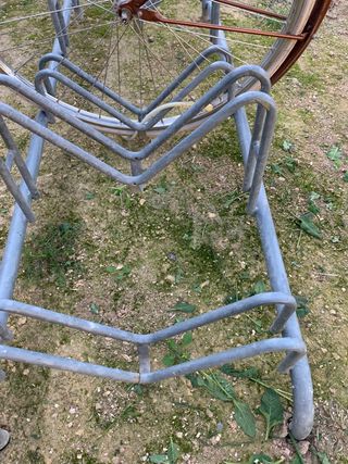Soporte metálico para aparcar bicicletas. - Estructura de metal resistente. - Diseño en forma de V para sujetar las ruedas.