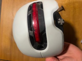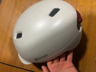 Casco Smart4U en color blanco, ideal para patinete o bicicleta. Cuenta con una luz trasera roja integrada para mayor visibilidad. - Diseño moderno y seguro. - Talla ajustable para un ajuste perfecto. - Material resistente para protección.