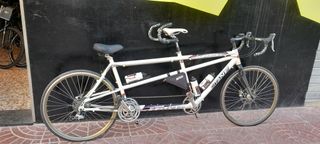 Bicicleta tándem de carretera de la marca Gitane. Ideal para dos ciclistas. - Cuadro blanco aluminio - 27 velocidades - Manillar de carretera. - Dos portabidones incluidos.