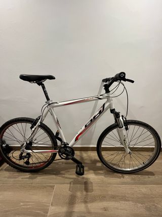 Bicicleta de montaña en color blanco. - Cuadro de aluminio. - Ruedas de 25 pulgadas. - Frenos de disco. - Camara de rueda trasera necesita cambio - 6 marchas traseras y 3 delanteras - bastantes defectos