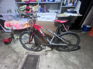 Bicicleta de montaña Specialized Rockhopper en color rojo. Se necesita arreglar las marchas de adelante porque están oxidadas y todavía frena pero sería recomendable cambiar la pasta de freno todo lo demás funciona perfectamente. - Cuadro de aluminio. - Ruedas de 29 pulgadas. - Frenos de disco. - Suspensión delantera.