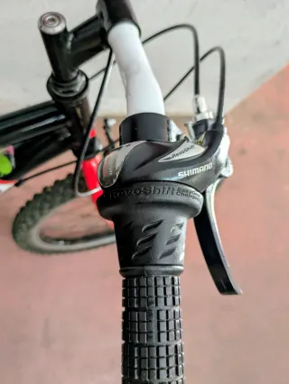 Bicicleta de montaña de 20 pulgadas en pefecto estado,color rojo. - Cuadro robusto y duradero. - Ruedas todoterreno. - Sillín ajustable. -Cambio de marchas shimano.