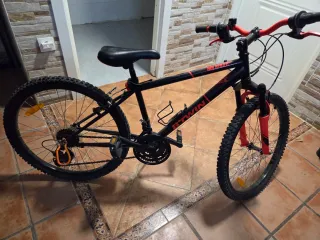 Bicicleta de montaña en buen estado, lista para usar. - Cuadro de metal resistente. - Ruedas de 26 pulgadas. - Frenos fiables. - Cambio de marchas.