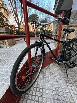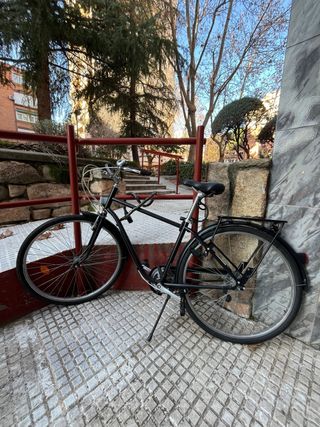 🚲 Bicicleta urbana clásica en muy buen estado Vendo bicicleta de ciudad, ligera y cómoda, ideal para desplazamientos diarios, ir al trabajo o paseos. Funciona perfectamente y está lista para usar. 🔹 Cuadro resistente y ligero 🔹 Ruedas grandes (tipo 700) con neumáticos en buen estado 🔹 Cambio de marchas suave 🔹 Portaequipajes trasero incluido 🔹 Guardabarros delantero y trasero 🔹 Caballete lateral 🔹 Timbre y luz delantera instalados Es una bici práctica, cómoda y elegante, perfecta para ciudad. Siempre guardada en interior. 📍 Se puede ver y probar sin compromiso. 💰 Precio negociable dentro de lo razonable.