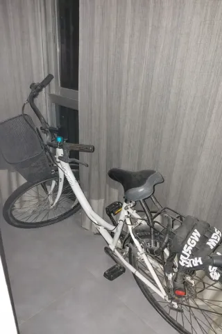 Bicicleta urbana de color negro, perfecta para desplazamientos diarios. Cuenta con una cesta delantera para llevar tus pertenencias. - Cesta de mimbre - Cambio de marchas - Guardabarros delantero y trasero - Portaequipajes trasero Soy estudiante de intercambio y he usado mucho la bici durante mi estancia aquí. Lamentablemente, el semestre está a punto de terminar, así que estoy buscando un nuevo dueño.