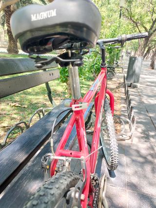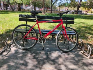 antigua,sin cambio de marchas modelo Nevada va bien,solo habría k ajustar el freno,k va algo duro. de 16 pulgadas con inflador y porta botellas podría enviar
