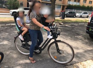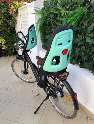 Bicicleta urbana con silla infantil Thule para transportar a los más pequeños de forma segura. - Silla de color verde menta. - Diseño ergonómico. - Respaldo acolchado.