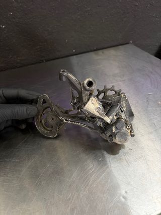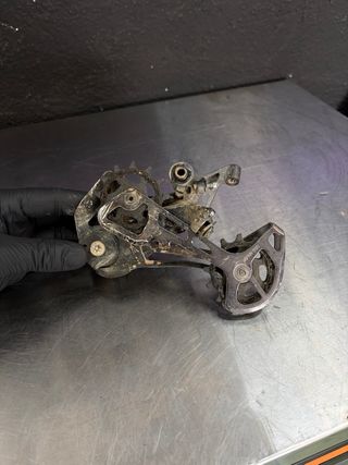 Desviador Shimano XT 12v. Componente muy usado, con marcas evidentes de uso, pero todavía funcional. Ideal como recambio, para uso diario o para montar un grupo 12v a bajo coste. Condición según fotos. Palabras clave desviador Shimano XT 12v, cambio trasero Shimano XT, desviador MTB 12 velocidades, cambio Shimano XT usado, recambio Shimano XT, componentes MTB Shimano, desviador 12v MTB, cambio trasero MTB funcional