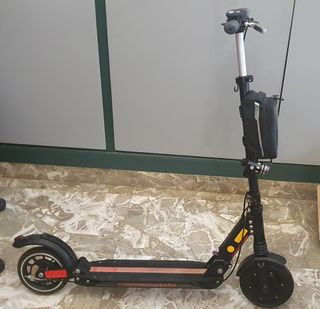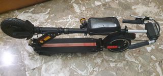 Patinete eléctrico totalmente plegable Solamente probado, con 5 kilómetros Rueda trasera con freno y delantera con freno motor. Suspension delantera y trasera Tres velocidades Peso soportado 150 kilos Guardabarros delantero y trasero. - Bolsa de transporte.. Luz delantera y trasera Timbre, cargador. Debido a mis piernas, no la puedo usar. Entrega únicamente en mano. Estado igual que nueva. Me costó 365€, doy factura.