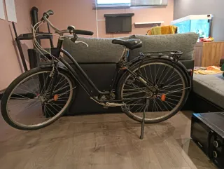 Bicicleta urbana de color negro, ideal para desplazamientos diarios. - Cuadro de bicicleta (6 marchas) - Ruedas de bicicleta nuevas - Manillar de bicicleta. - Sillín de bicicleta. - Pedales de bicicleta. - Guardabarros. - Portaequipajes. - Antirrobo incluido
