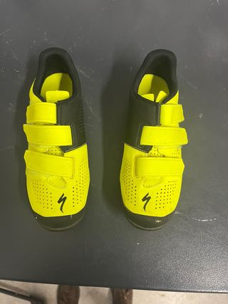 Zapatillas de ciclismo de montaña Specialized en llamativo color neón amarillo. - Cierre con velcro. - Diseño deportivo. - Talla 38. Usando una vez solo