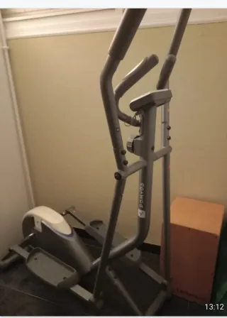 Bicicleta elíptica de la marca Domi, ideal para entrenamientos en casa. Cuenta con un diseño moderno y funcional. - Pantalla digital. - Puños ergonómicos. - Estructura robusta.