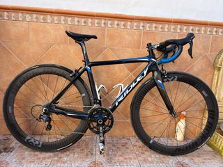 Bicicleta de carretera Ridley Fenix con cuadro de carbono. - Cuadro de carbono. - tija y manillar de carbono - Frenos de zapata - montada en ultegra a excepción del desviador de los platos - talla S Bicicleta muy cuidada con revisión completa y engrasado de ejes y rodamientos anuales. Cadena con pocos kms al igual que la piñonera. OJO** en el precio no va incluidas ni las ruedas de perfil (se venden con las ruedas fulcrum que traia la bici de casa) ni los pedales powertap con potenciometro.