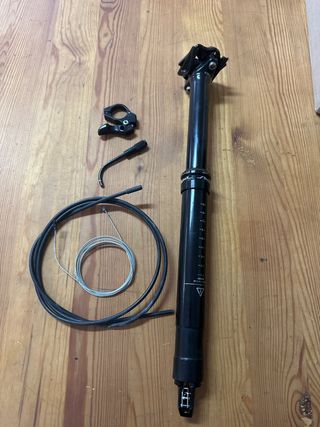 Tija telescópica Tranz X en color negro. Muy poco uso. Prácticamente nueva. 31,6 diámetro y 125. - Incluye mando y cableado.