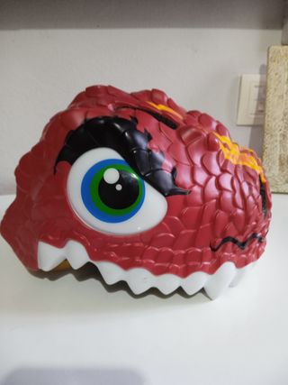 Casco infantil con diseño de dinosaurio, ideal para niños de 2 a 4 años. Se encuentra en buen estado. - Diseño llamativo de dinosaurio. - Talla para 2-4 años.