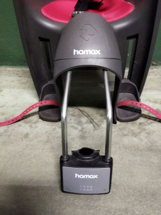 Silla niño bicicleta marca hamax. Para niños desde los 9 meses y hasta los 22 kg. Asiento ergonómico que protege la espalda del niño. Arnés con fijación en tres puntos y reposapiés ajustables. Se incluye el kit de fijación a la bicicleta. Dimensiones: 48x39x71 cm / 4,3 kg