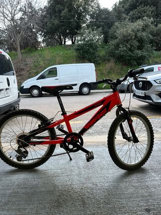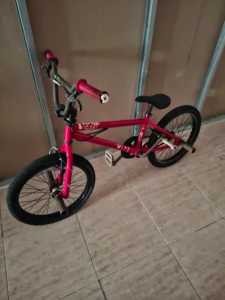 Bicicleta BMX de color rojo, ideal para trucos y paseos. - Cuadro de acero resistente. - Ruedas de 20 pulgadas. - Puños rojos. - Pedales de plataforma. Se tiene que revisar las ruedas y los frenos etc hacer una puesta apunto su precio ..