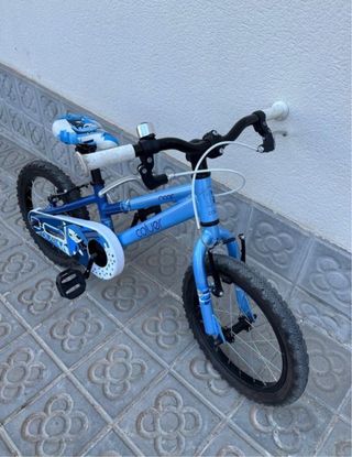Bicicleta infantil de la marca Coluer en color azul. Se encuentra en muy buen estado y ha tenido poco uso. Talla 16, mi hijo le cogimos para 4 años y la podría haber utilizado con 5 años también - Incluye ruedines para facilitar el aprendizaje. - Diseño atractivo con detalles gráficos.
