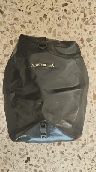 Alforja Ortlieb Back-Roller Classic de 20 litros, impermeable. En excelente estado. - Cierre enrollable. - Material resistente. - Diseño clásico. Novedad para 2007: ¡todos los modelos incluyen un bolsillo interno! Back-Roller Classic • tejido de poliéster • sistema de anclaje QL1 • reflectantes Entregas en estación de Renfe Canet de Mar, o metros de combinación con R1: El Clot, Arco del Triunfo.
