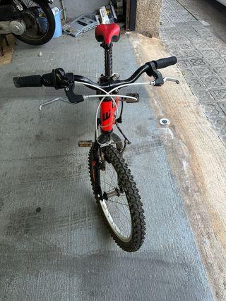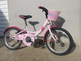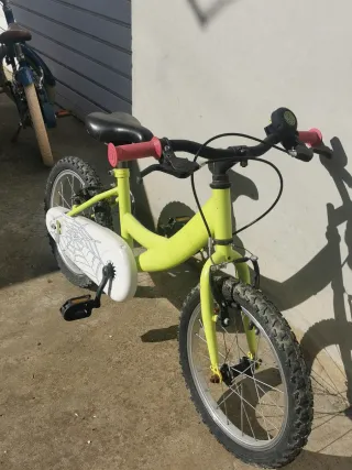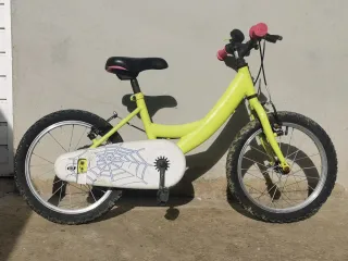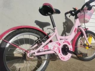Bicicleta infantil de Decathlon, 16 pulgadas la compré nueva en junio de 2025 solo 6 meses de uso tiene algunos pequeños desgastes pero esta perfecta le agregue el.pie y el cesto está bici nueva sale 110€. Se retira en persona zona maresme