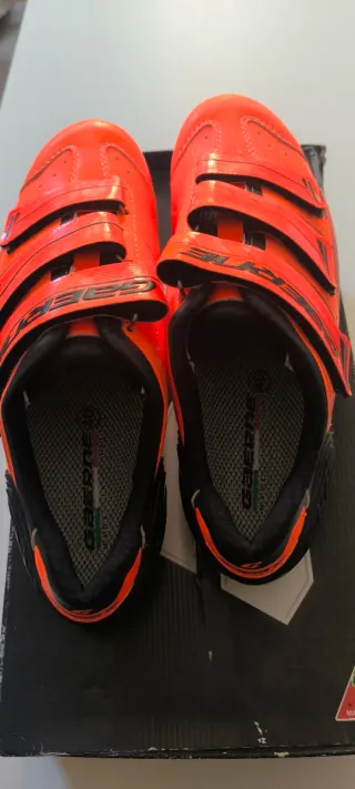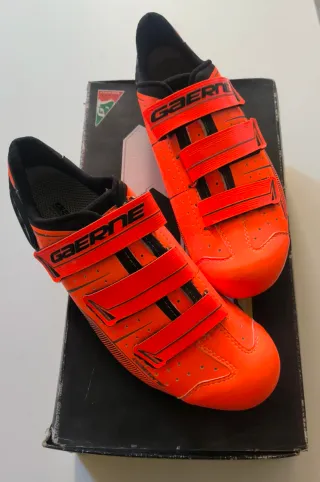 Botas de ciclismo de la marca Gaerne en llamativo color naranja. ***DOS USOS*** - Talla 40, etiqueta en la última foto - Cierre con tres velcros. - Diseño deportivo. - Fabricadas en Italia.