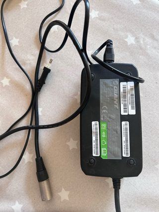 Cargador de corriente para bicicleta de la marca Giant. - Color negro. - Incluye cable de conexión.