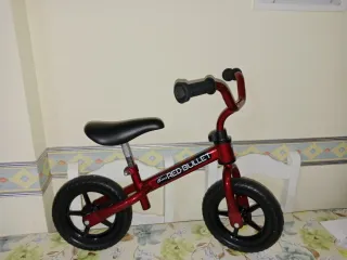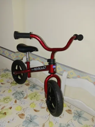 Bicicleta de equilibrio roja de la marca Chicco, modelo Red Bullet. Ideal para que los más pequeños aprendan a mantener el equilibrio. - Marco de metal rojo brillante. - Ruedas negras. - Asiento negro. - Puños negros.