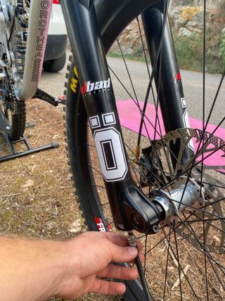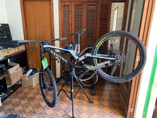 Canyon Sender cf9.0 2018 team . There is damange on the carbon of the shock eyes (on the frame/ delaminated) and for bolt thread on lower eye on frame. Shock is mounted though. Carbon can be repaired aswell. -Size M 441 mm reach with +5mm stem -27.5 -rockshox boxxer 2019 -vivid coil - rebound adjuster needs to be put on / repaired -hope 4 hubs - Dt swiss wheels -maxxis assegai tires -g5 handlle bars -g5 stem - sram guide brakes, one is different to the other and one doesnt have the bar clamp to attach to the by bike comes complete except for - cranks , cassette , derailleur hanger and brake pads