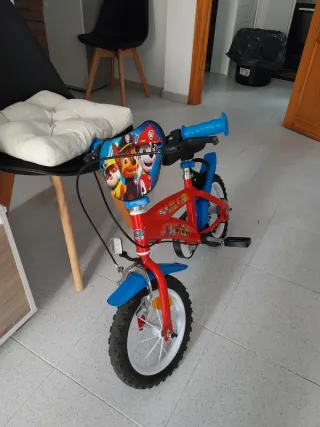 Bicicleta infantil con diseño de Paw Patrol, casi nueva. Solo se ha usado un par de veces. - Color principal: rojo. - Ruedines incluidos.